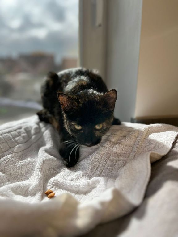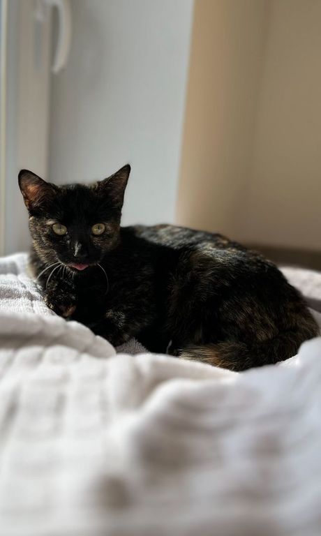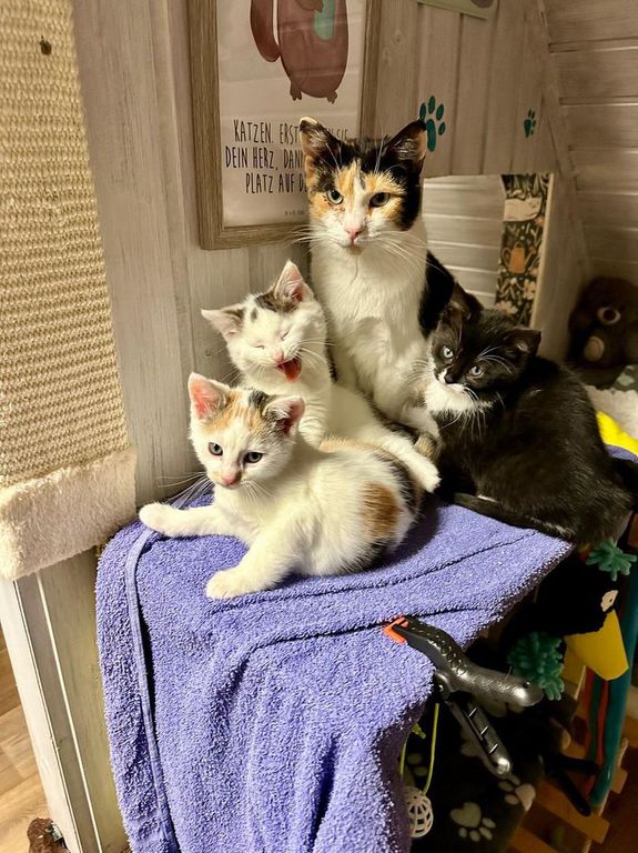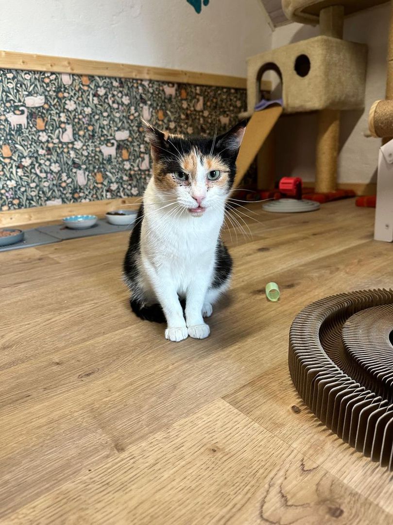 Runi ist ca. 2023/2024 geboren. Sie hat bei uns ihre Kitten bekommen. Vorher hatte sie immer draußen gelebt und scheinbar keine guten Erfahrungen gemacht. Mittlerweile ist sie umgänglicher und interessierter am Menschen geworden, lässt Streicheln aber noch nicht zu. Sie braucht später unbedingt Feigang, vielleicht auf einem Hof. Sie wird kastriert, gechipt und entwurmt vermittelt. Sie ist keine Anfängerkatze.