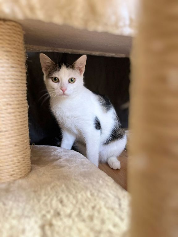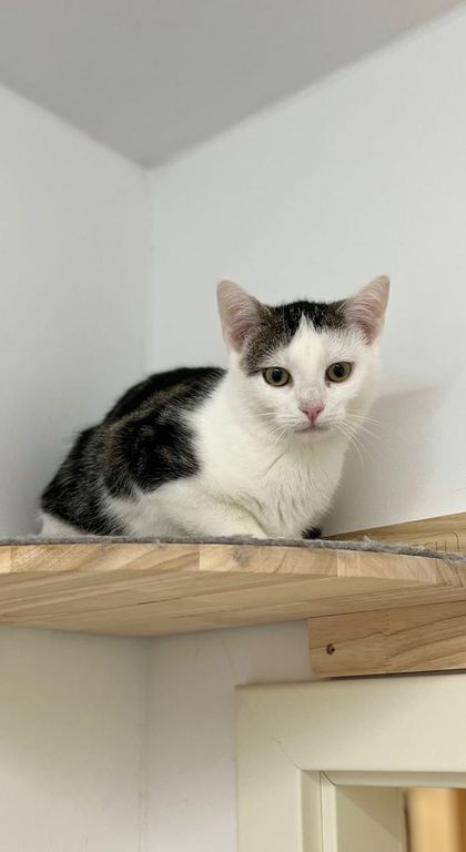 Für Pünktchen wünschen wir uns ein Zuhause mit einem bereits vorhandenen Katzenkind, bei dem sie sich noch ein bisschen was abgucken und von ihm lernen kann